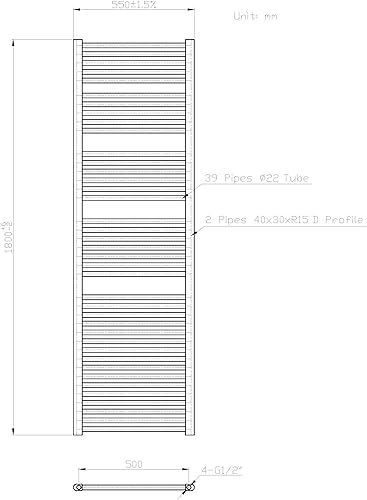 Radiatore termoarredo scaldasalviette cromato 180x55 interasse 50