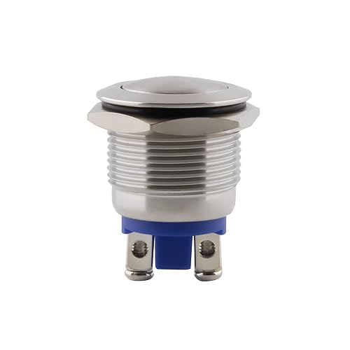 SeKi 19161 - Pulsante a pressione in acciaio inox, Ø 19 mm, a forma di testa curva, attacco a vite; campanello