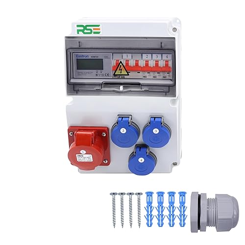 RSE Distributore di corrente da parete, completamente cablato, 4 circuiti, 128 A, 230 V, IP65, 210 x 122 x 210 mm, CEE Bals, Schuko, LS, RSE-001739