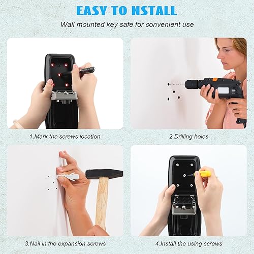 Cassetta Sicurezza Chiavi, Cassaforte Portachiavi con Codice 12 Cifre, Cassetta Sicurezza Chiavi, Combinazione Chiavi Impermeabile per Casa, Garage, Ufficio, Esterno (Noir)