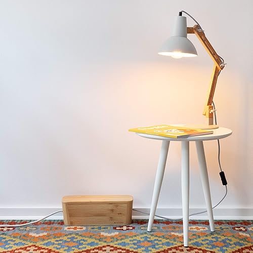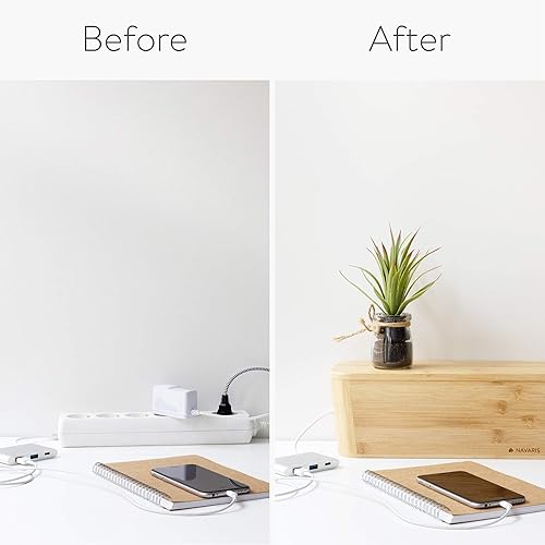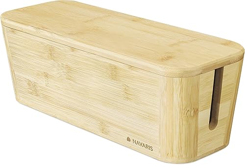 Navaris Scatola Nascondi Cavi Elettrici in Bambù 32x12x11cm - Canalina Copriciabatta - Box Copri Fili Ciabatta Elettrica Sdoppiatore Presa Corrente