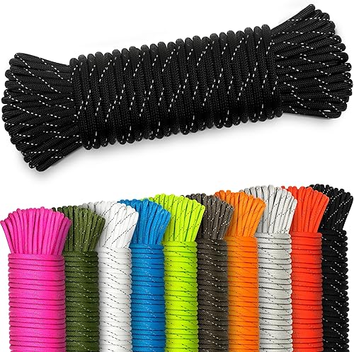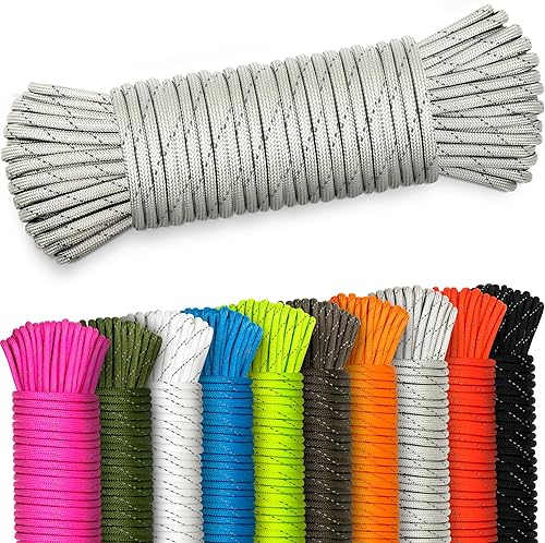 5,10 o 15m Filo Paracord 550 riflettente da 4mm | Filo Paracord Riflettente 7 Fili Interni | Equipaggiamento Outdoor (bianco riflettente, 15 metri)