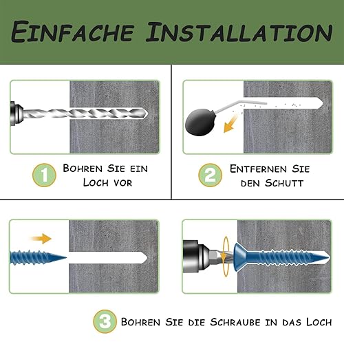 Viti per calcestruzzo a testa svasata con impronta a croce M5,5 x 70, 30 viti per calcestruzzo zincate con punta per trapano e vite per muratura, cemento, architettura, industria (blu)