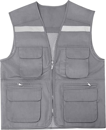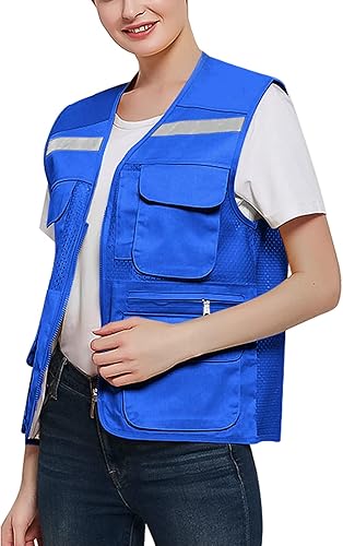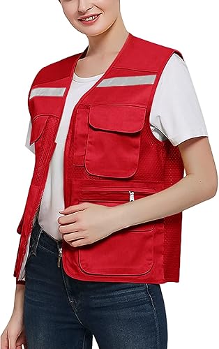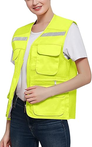 Gilet di Sicurezza Riflettente Unisex Gilet da Lavoro in Rete ad Alta Visibilità Gilet Esecutivo Multitasche Fluorescente Scollo a V con Cerniera, Costruzione/Volontario/Lavori all'aperto, S-XL