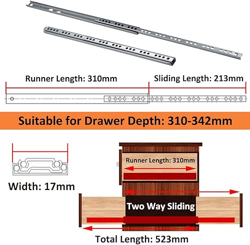 4 Paia (8 Pezzi) 438mm Guide per Cassetti 17mm Cuscinetti a Sfera Guide di Cassetti Acciaio Zincato Guide a Estrazione Binari Cassetti Scorrevoli Guida di Cursori Armadio
