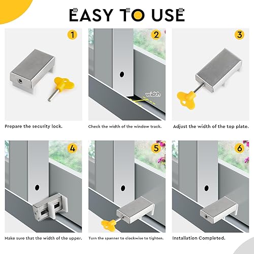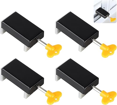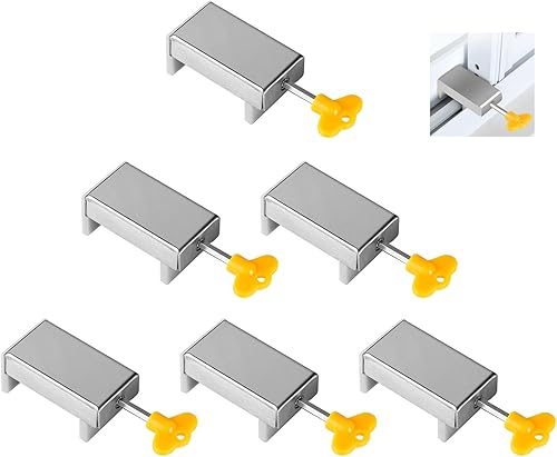 4 Pezzi Chiusura Finestra Scorrevole Regolabile Serratura Finestra Scorrevole Serratura di Sicurezza per Bambini con Chiave Finestra Scorrevole Stop Argento