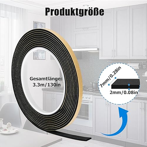 Nastro sigillante per piano cottura con piccolo raschietto, 3,3 m, 2 pezzi 7 mm x 2 mm nastro di montaggio per nastro sigillante Ceranfeld