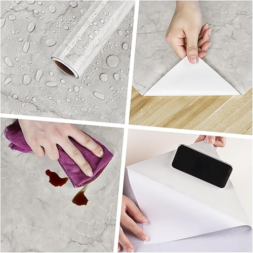 HotDecor Pellicola Adesiva Per Mobili Carta Da Parati Adesiva Marmo Carta Adesiva Per Mobili Piano Di Lavoro Cucina Carta Adesiva Per Pareti Grigio Bianco Adesivi Per Mobili Decorativi 60cm x 300cm