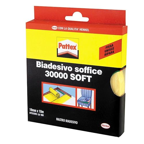 Pattex Nastro Biadesivo 30000 Soft, Nastro Biadesivo Forte, Tenuta, per Stand di Fiere e Mostre, Specchi, Cartelloni, Nastro Adesivo di Montaggio per Interni ed Esterni, 19 mm x 10 m