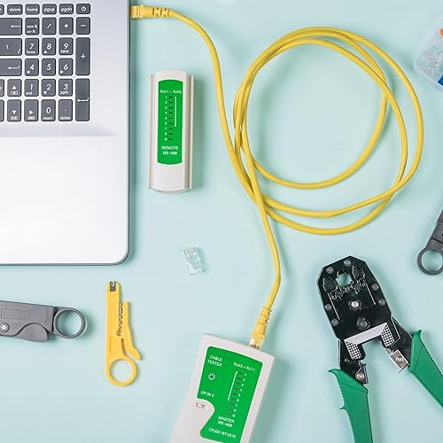 Retoo Tester Cavo di Rete, Patch LAN, RJ11 RJ12 RJ45, Professionale, Tester Collegamento, Verifica Cavi, Strumento di Test per Cavi Ethernet, 10,5 x 10 x 2,5 cm, Grigio-Verde