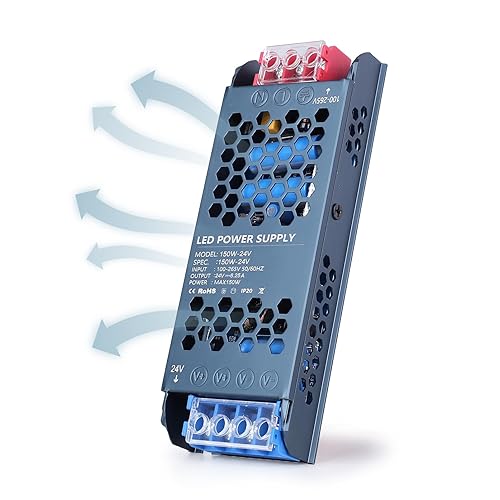 Alimentatore 24V, 150W 6,3A Trasformatore 220V 24V, LED Driver, Ultra Fino Tensione Costante AC 220V a DC 24V Driver, LED Power Supply Bassa Tensione per Strisce Luci Lampada LED