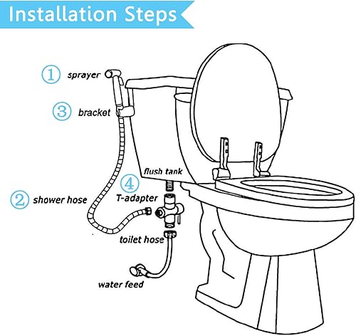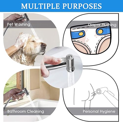 Doccetta Bidet a Mano, Doccetta in acciaio inox per WC, con incluso Adattatore a T, Tubo da 1.5M e staffa di supporto, ideale per l'igiene personale quotidiana (B)
