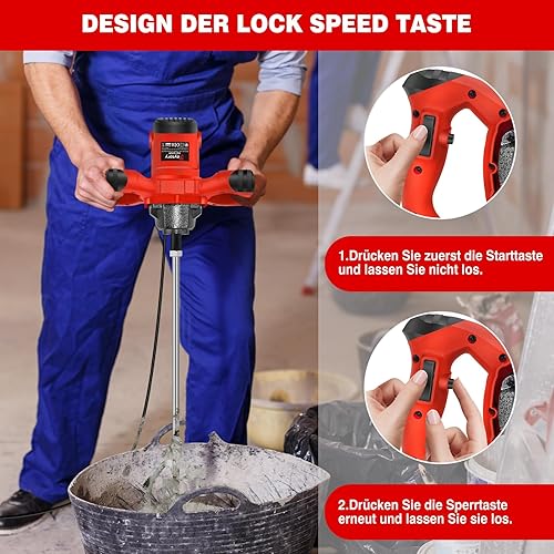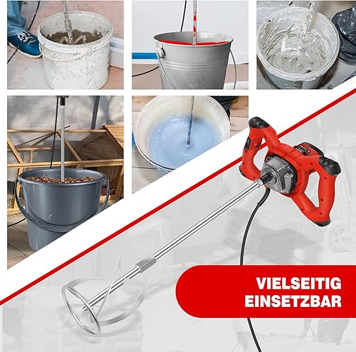 Agitatore, miscelatore per pittura e malta, 2600 W, mescolatore manuale per malta per calcestruzzo, trasmissione a 6 marce 0-1700 giri/min, filettatura M14, agitatore a onda, Ø 120 mm, malta per