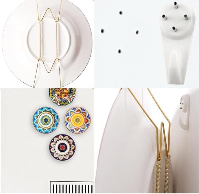 Set di 4 Appendi Piatti da Parete in Acciaio Inossidabile, 8 e 10 Pollici con 16 Coperture Protettive Trasparenti, Ganci per Piatti da Appendere per Display Decorativi, Facile Installazione