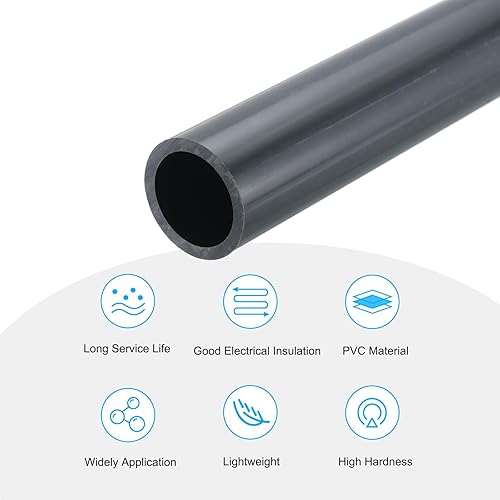 Tubo Rigido Rotondo in PVC 25,6mm ID 32mm OD 8' Lunghezza Grigio Scuro ad Alta Resistenza per Tubi d'Acqua, Artigianato, Guaina Cavi