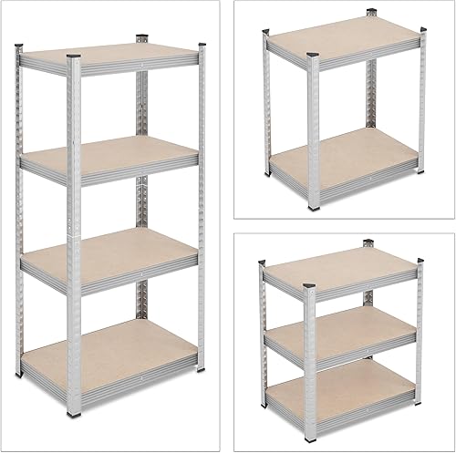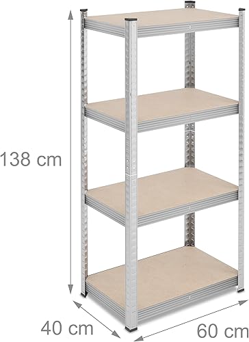 Relaxdays Scaffale Alta Portata in Acciaio Zincato, HLP: 138x60x40 cm, Carico 200 kg, per Garage e Cantina, Argentato, Inox