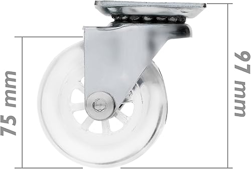 PrimeMatik - Rotelle pivotanti Ruote Industriale di Poliuretano e PVC Trasparente Senza Freno 75 mm 4-Pack