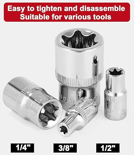 14 Pezzi Chiavi a Bussola E-Torx a Stella Set di Bussole Profilo Di Bussole a Stella E-TORX 1/4' 3/8' 1/2' E4 E5 E6 E7 E8 E10 E11 E12 E14 E16 E18 E20 E22 E24 con Custodia Nera