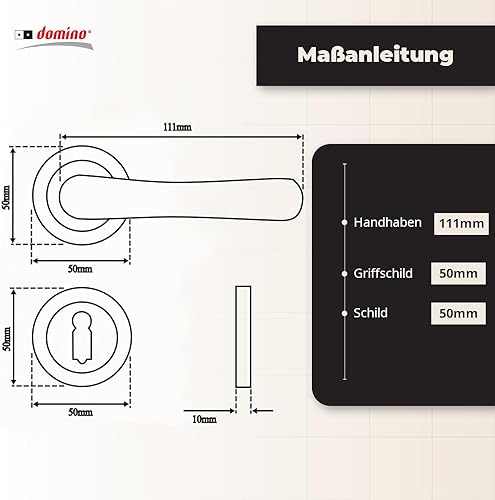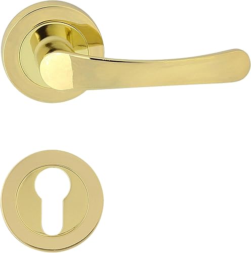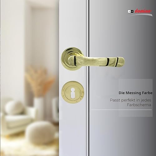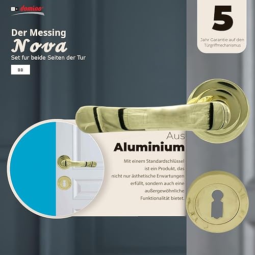 domino NOVA-R M1 - Maniglia per porta d'ufficio, cantina e porta interna, in alluminio, in ottone lucido