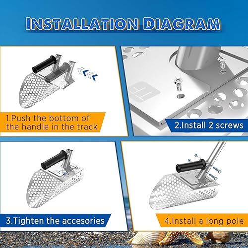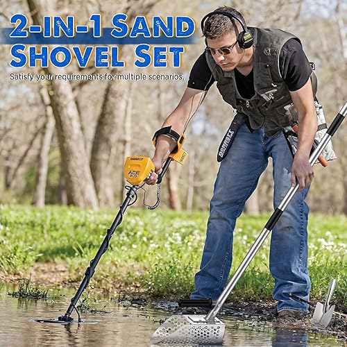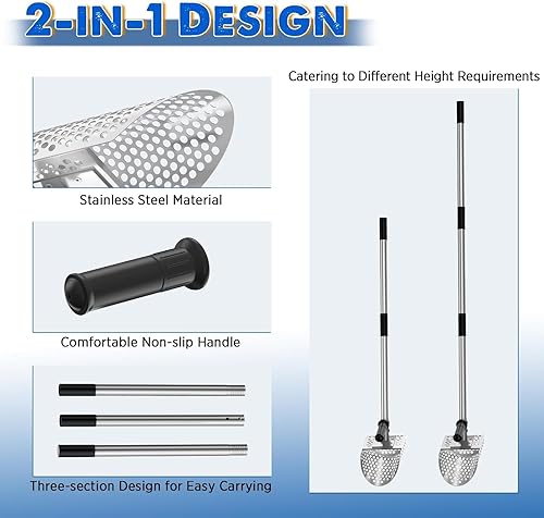 Paletta per sabbia con manico lungo, paletta per rilevamento di sabbia in metallo con manico lungo, paletta per sabbia da spiaggia in acciaio inossidabile palmare con manico lungo in
