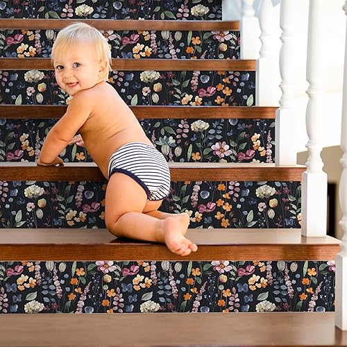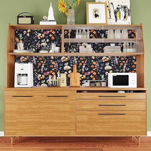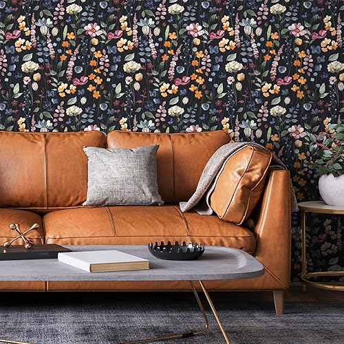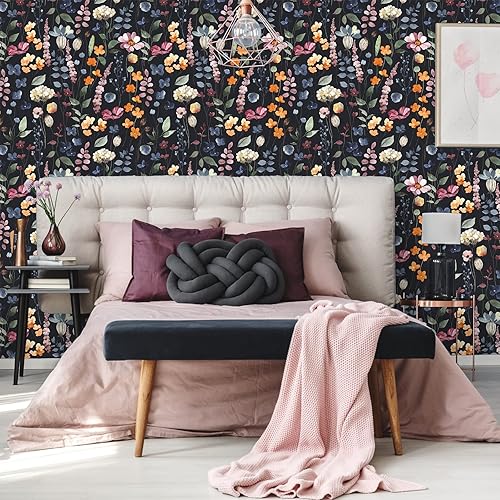 VEELIKE Carta da Parati Foglie Nera 44.5cm×900cm Carta Adesiva Fiori Vintage Pellicola Adesiva per Mobili Floreale Rotolo Adesivo per Mobili Rivestimento Parete Cameretta Salotto Cucina Lavabile