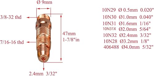 RIVERWELD TIG Collet Bodis 10N24 10N32 (2,4 mm) Kit di dimensioni assortite adatto per SR DB PTA WP 17 18 26 Torcia per saldatura TIG 10 pezzi