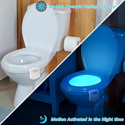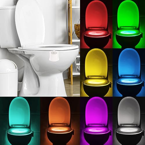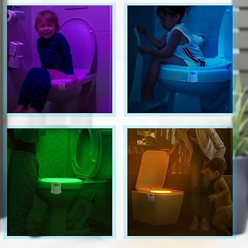 Powerole Luce Notturna WC LED Lampada Sensore Movimento,Alimentato da Batteria Impermeabile Luce Notturna, Luce WC per Bagno, 8 Cambiamento di Colori