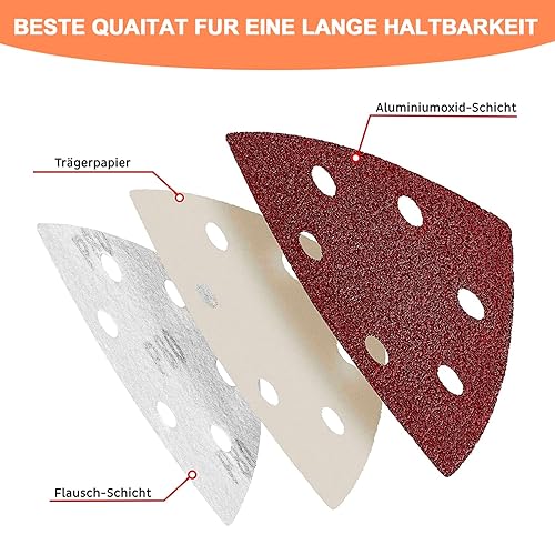 60 Pezzi Carta Vetrata per Levigatrice Mouse - Carta Abrasiva 6 Fori 93x93x93 mm Fogli Abrasivi per Levigatrice a Delta Elettrica con Ganci e Anelli 40 60 80 120 180 240 Grana per Black e Decker