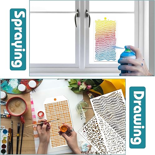 8 Pezzi Modelli di Pittura Leopardata,Painting Stencil Templates,Stencil Geometrici Stencil di Pittura per Tegola Legna Tela Pavimento Parete Mobili Decorazioni