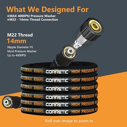 Tubi per Idropulitrici 50FT (15M), Tubo di Estensione Flessibile ad alta Pressione, 4000 PSI M22 filettatura femmina Tubo di Ricambio per Idropulitrice, Accessorio per Idropulitrice lavor
