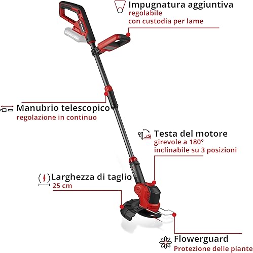 Tagliabordi a batteria GE-CT 18/25 Li-Solo Power X-Change di Einhell (18 V, larghezza di taglio 25 cm, testa del motore rotante e inclinabile, incluse 20 lame in plastica, senza batteria)