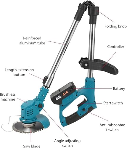 Decespugliatore elettrico, decespugliatore elettrico senza fili, 21 V, taglio bordo senza fili con batteria, asta telescopica regolabile, interruttori intelligenti per la casa, il giardino (secondo