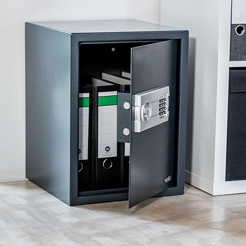HMF 4612812 Cassaforte Mobile, Tresoro con Serratura Elettronica, Armadi di Sicurezza, Raccoglitore A4, 48 x 36 x 37 cm, antracite