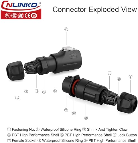 LP-12 Connettore industriale stagni IP68 Connettore circolare a innesto rapido Guscio in plastica PBT Connettore aviazione M16 Maschio e Femmina a 2-8 Pin (6 Pin)
