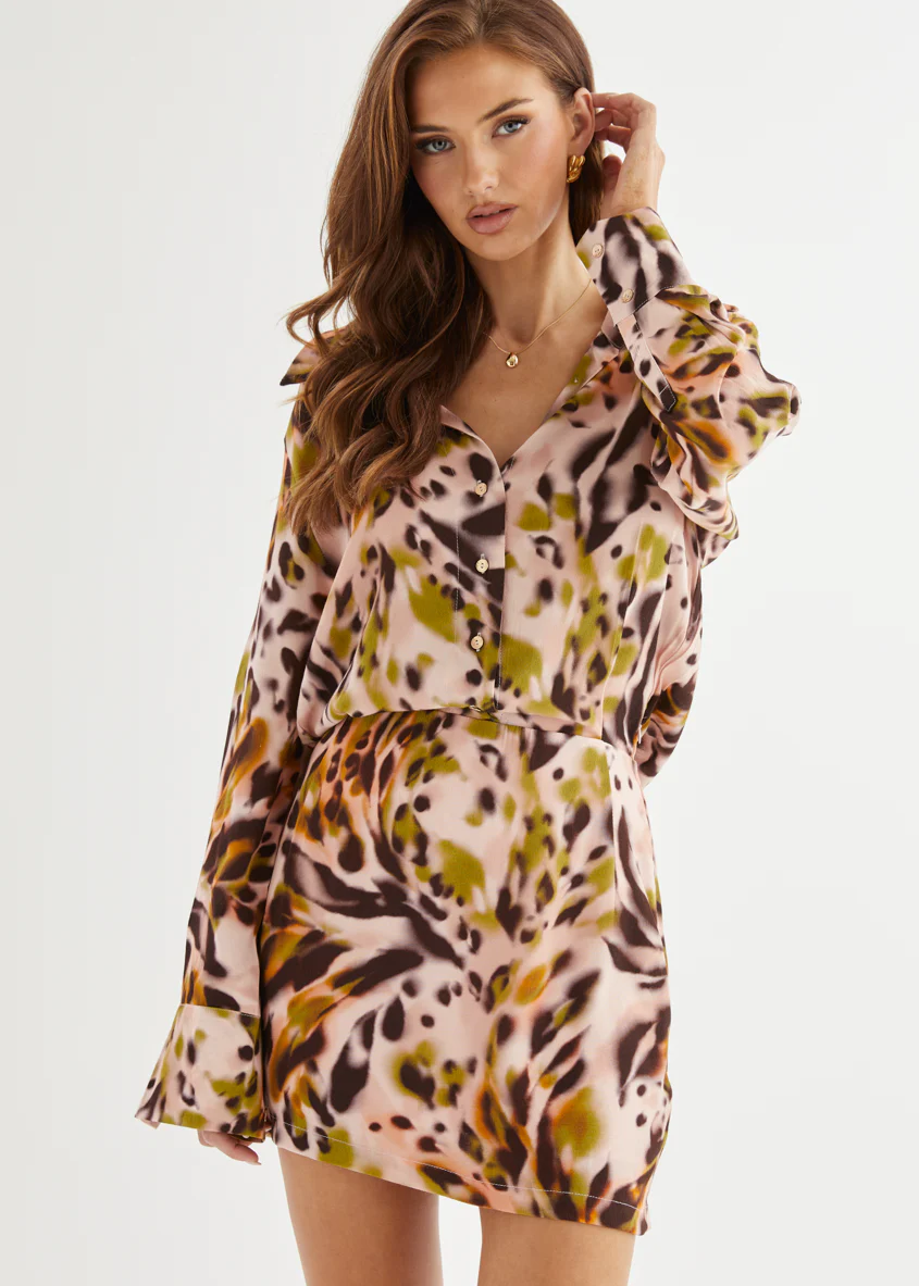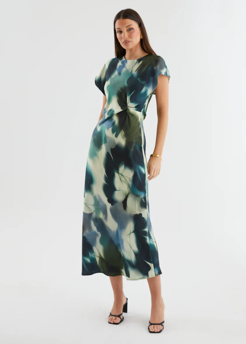 Odesza Maxi Dress - Olive Abstract