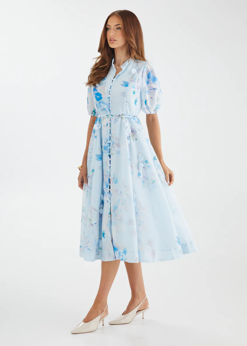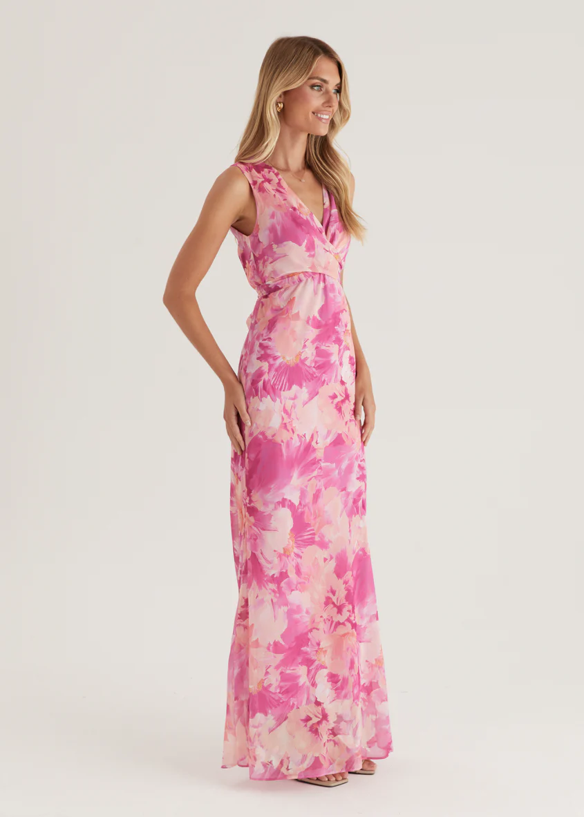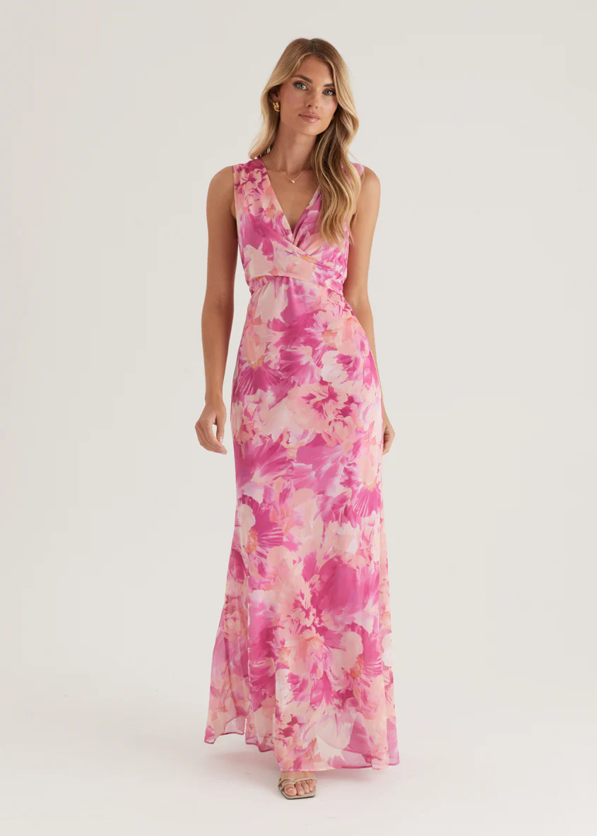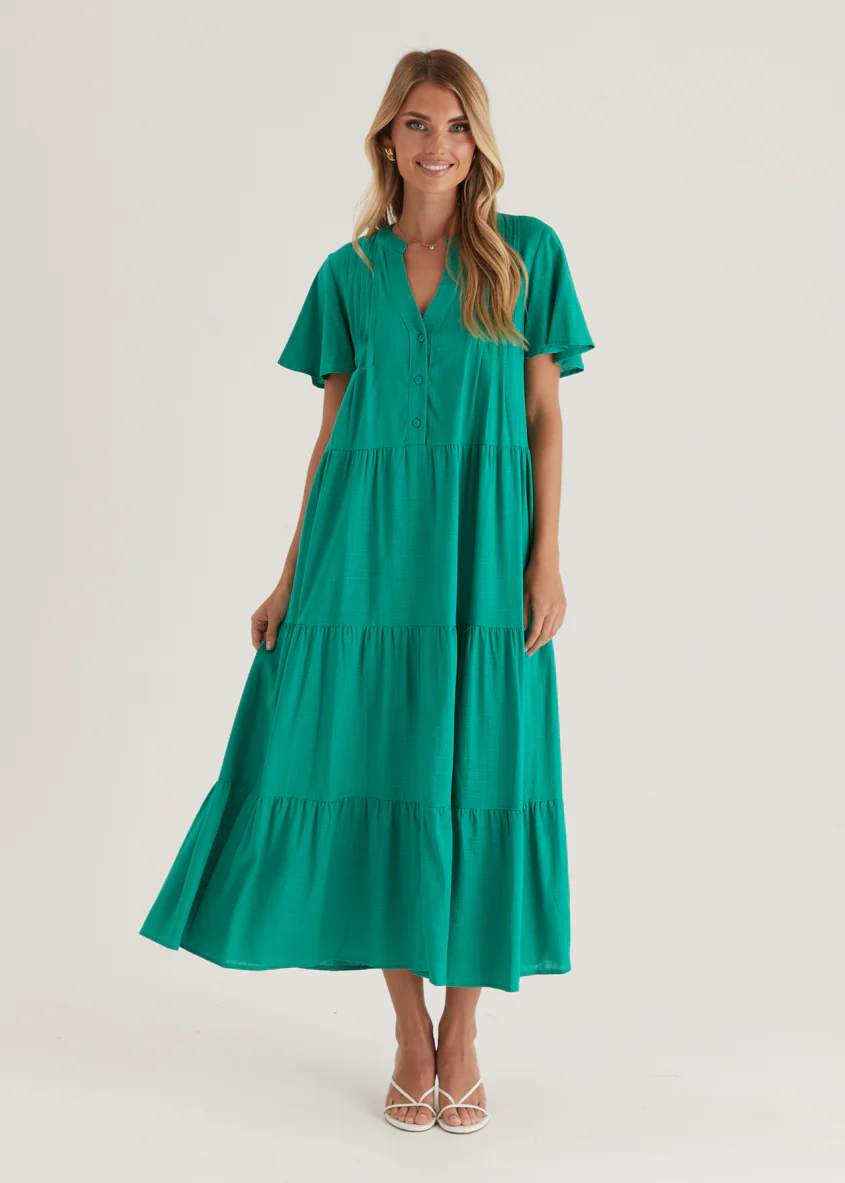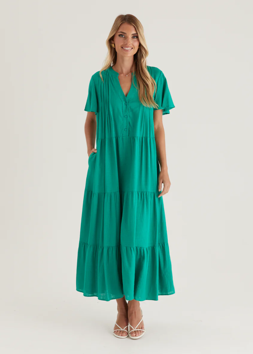 Nix Off Shoulder Maxi Dress - Emerald Watercolour