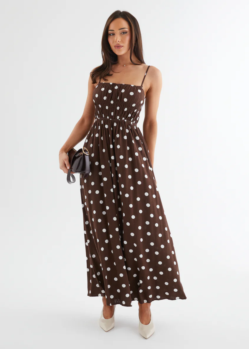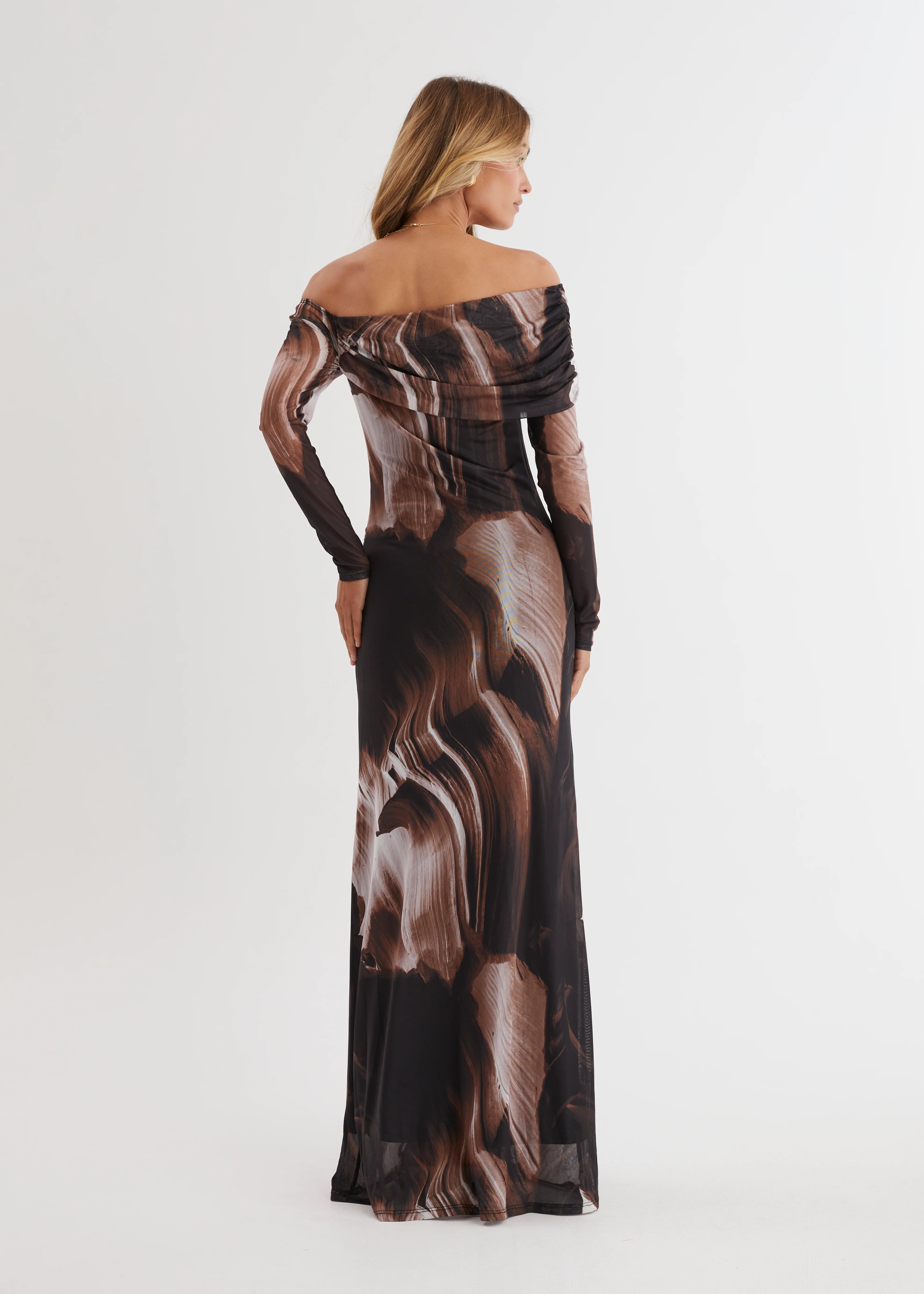Nix Off Shoulder Maxi Dress - Choc Swirl