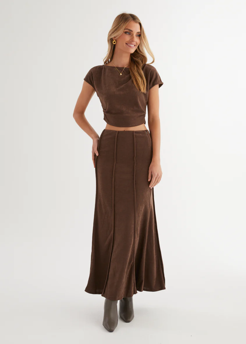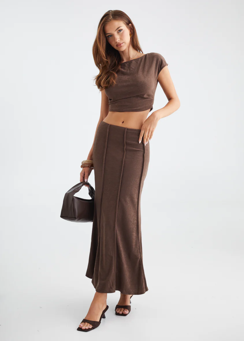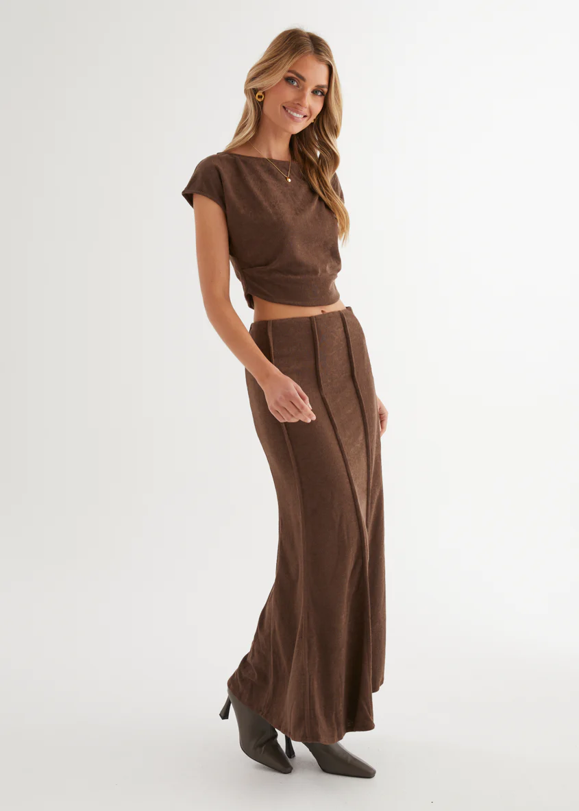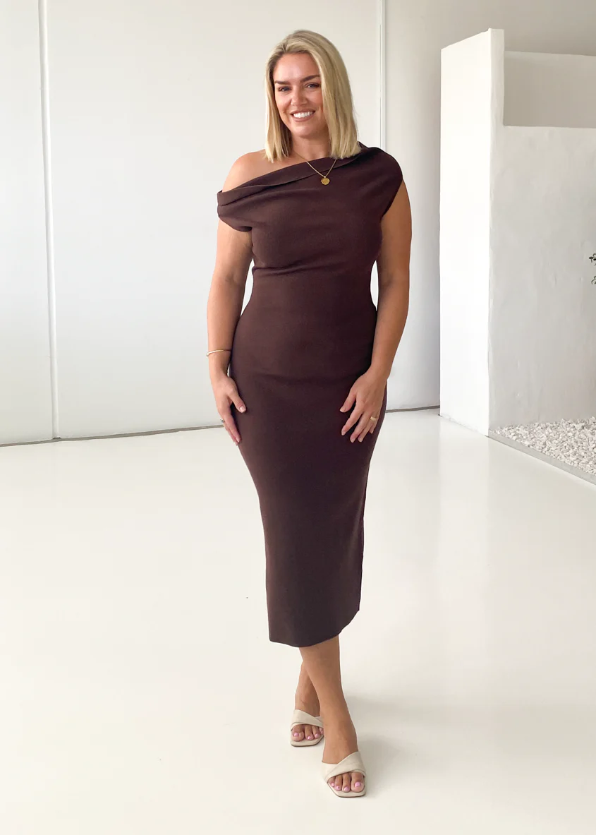 Milena Drop Shoulder Knit Midi Dress - Chocolate