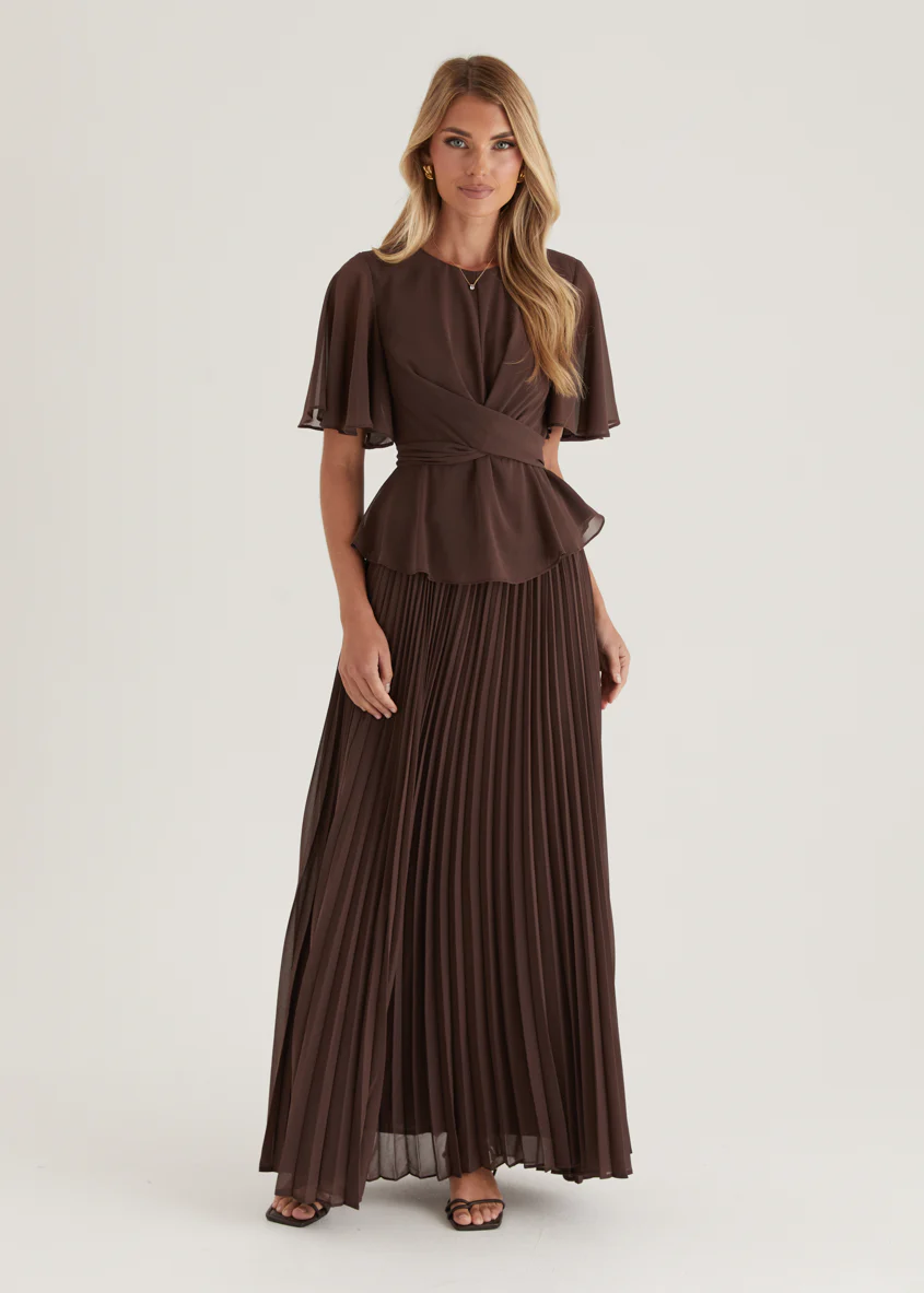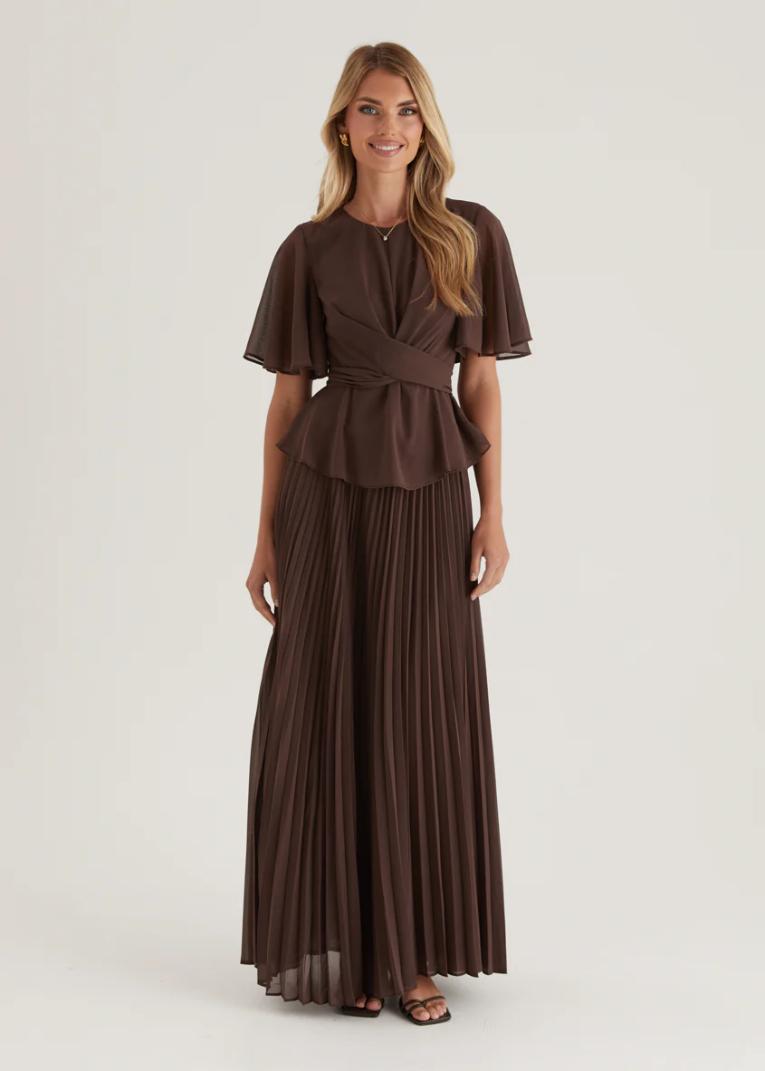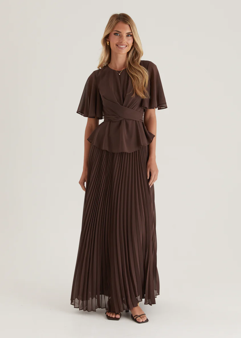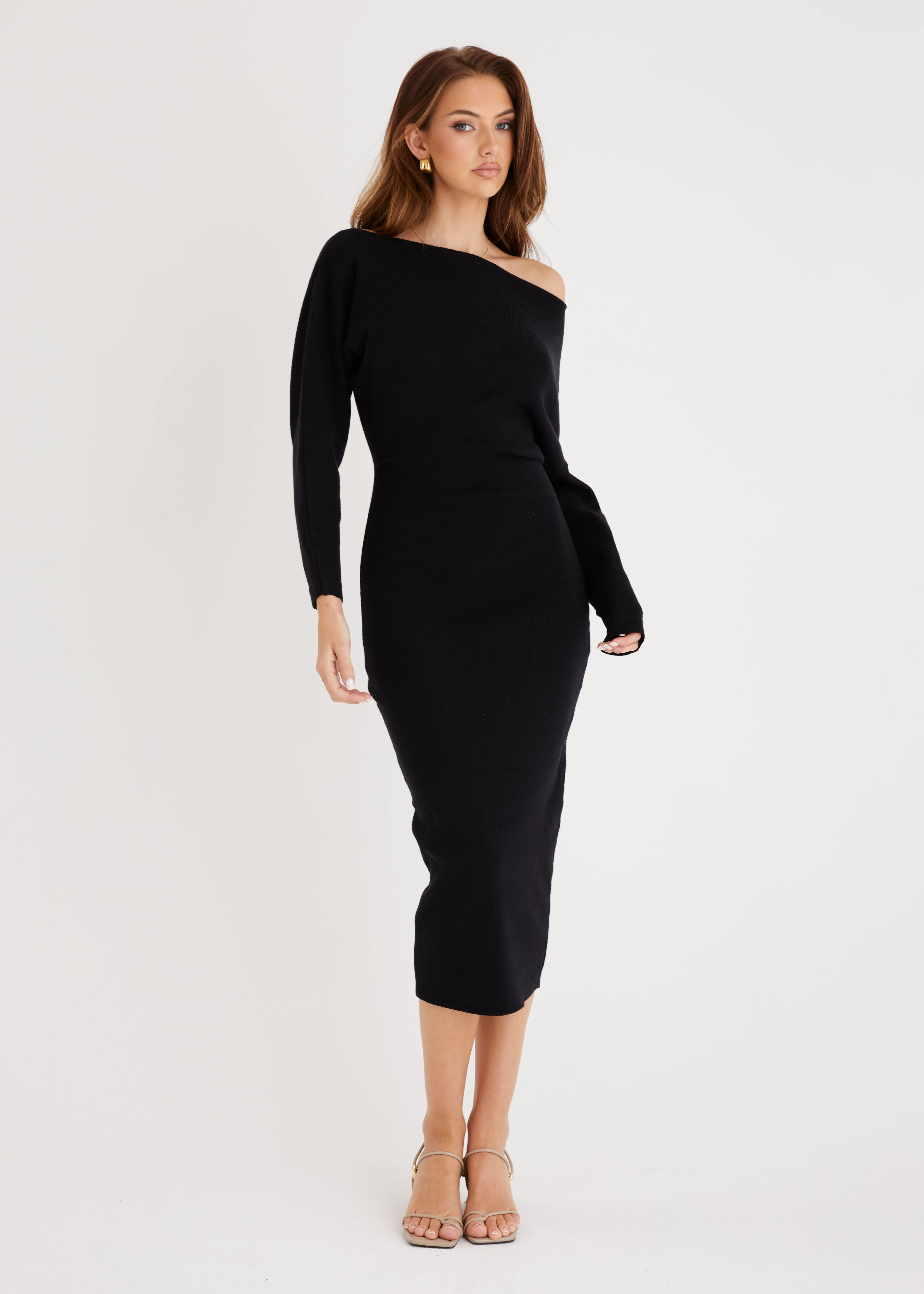 Milena Drop Shoulder Knit Midi Dress - Chocolate