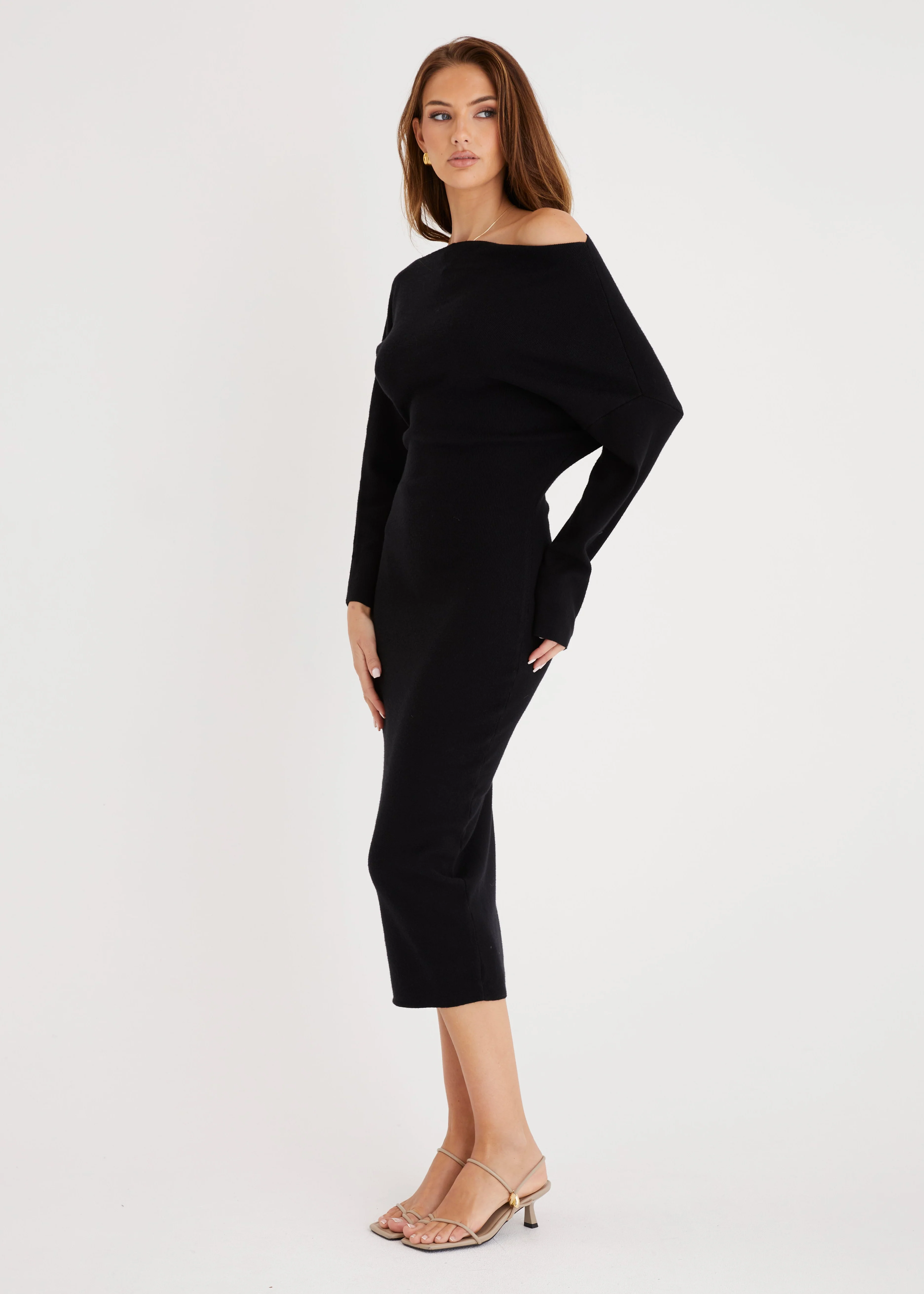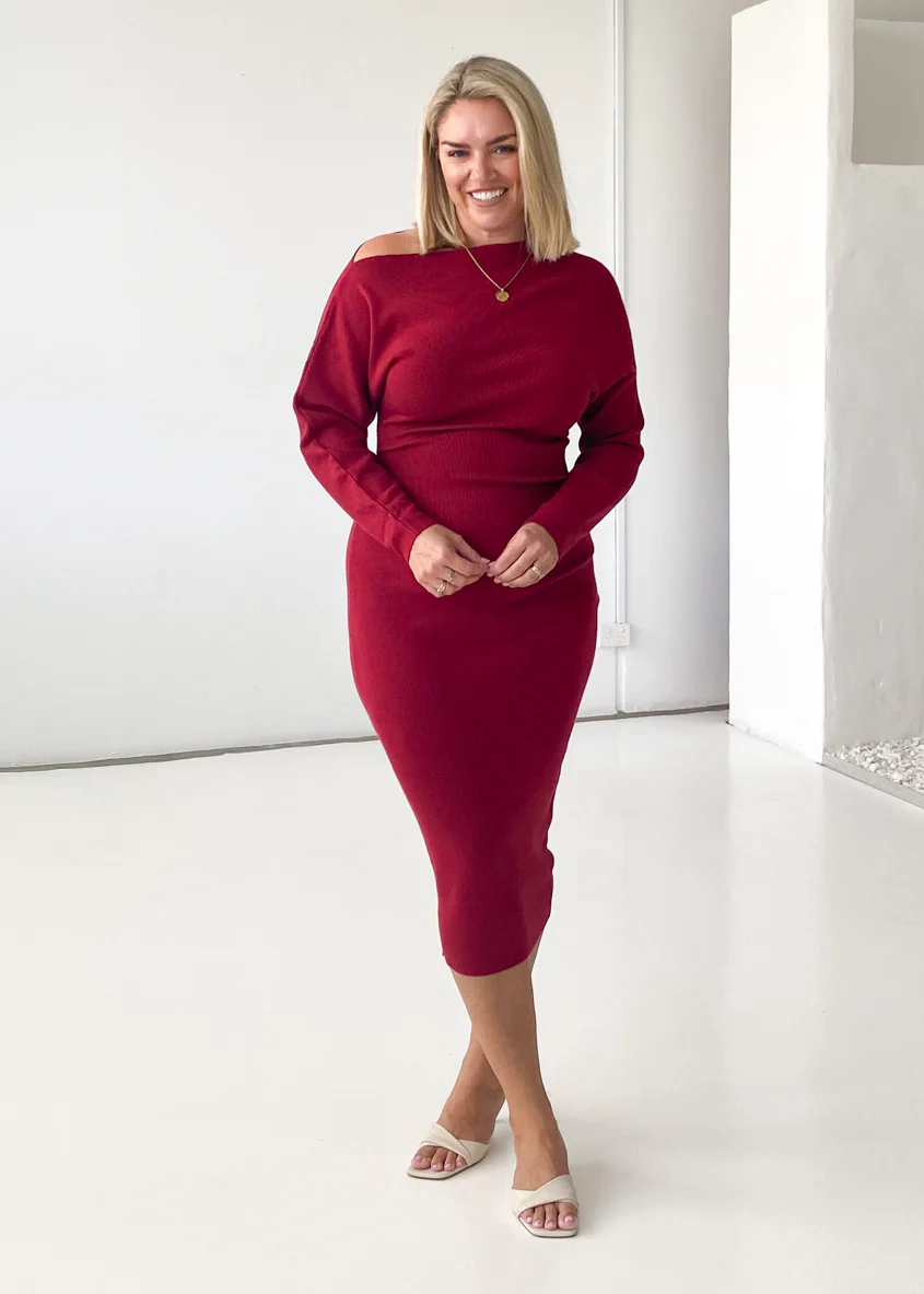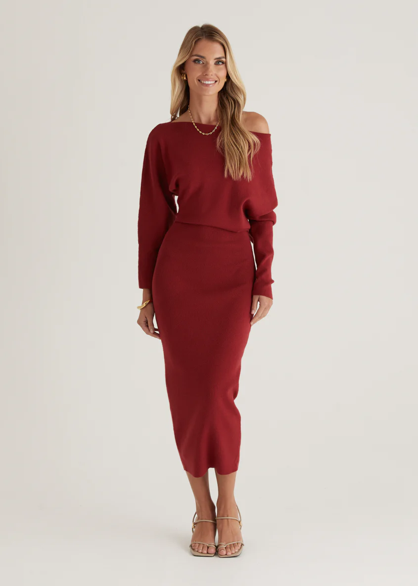 Milena Drop Shoulder Knit Midi Dress - Wine