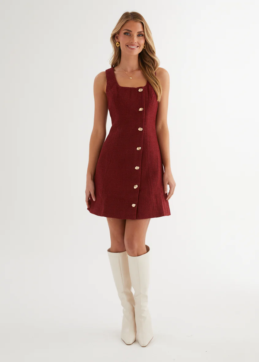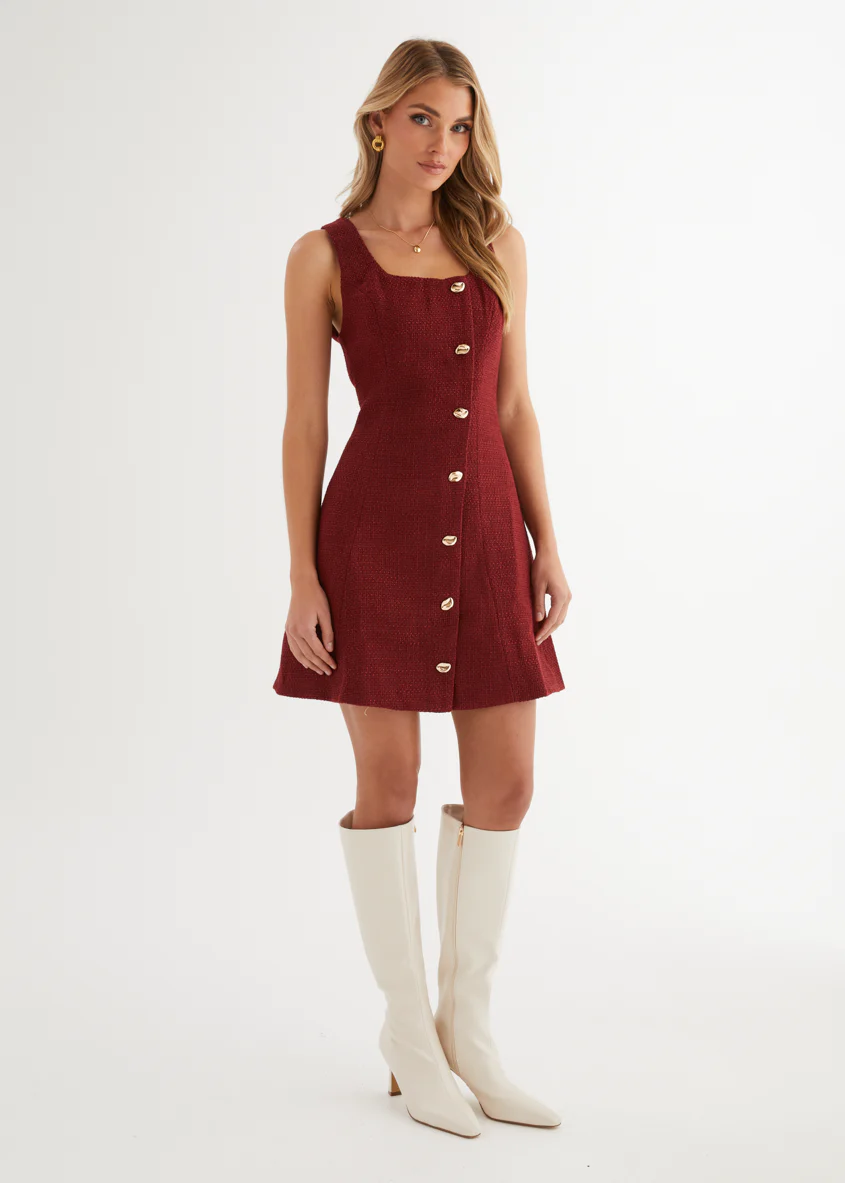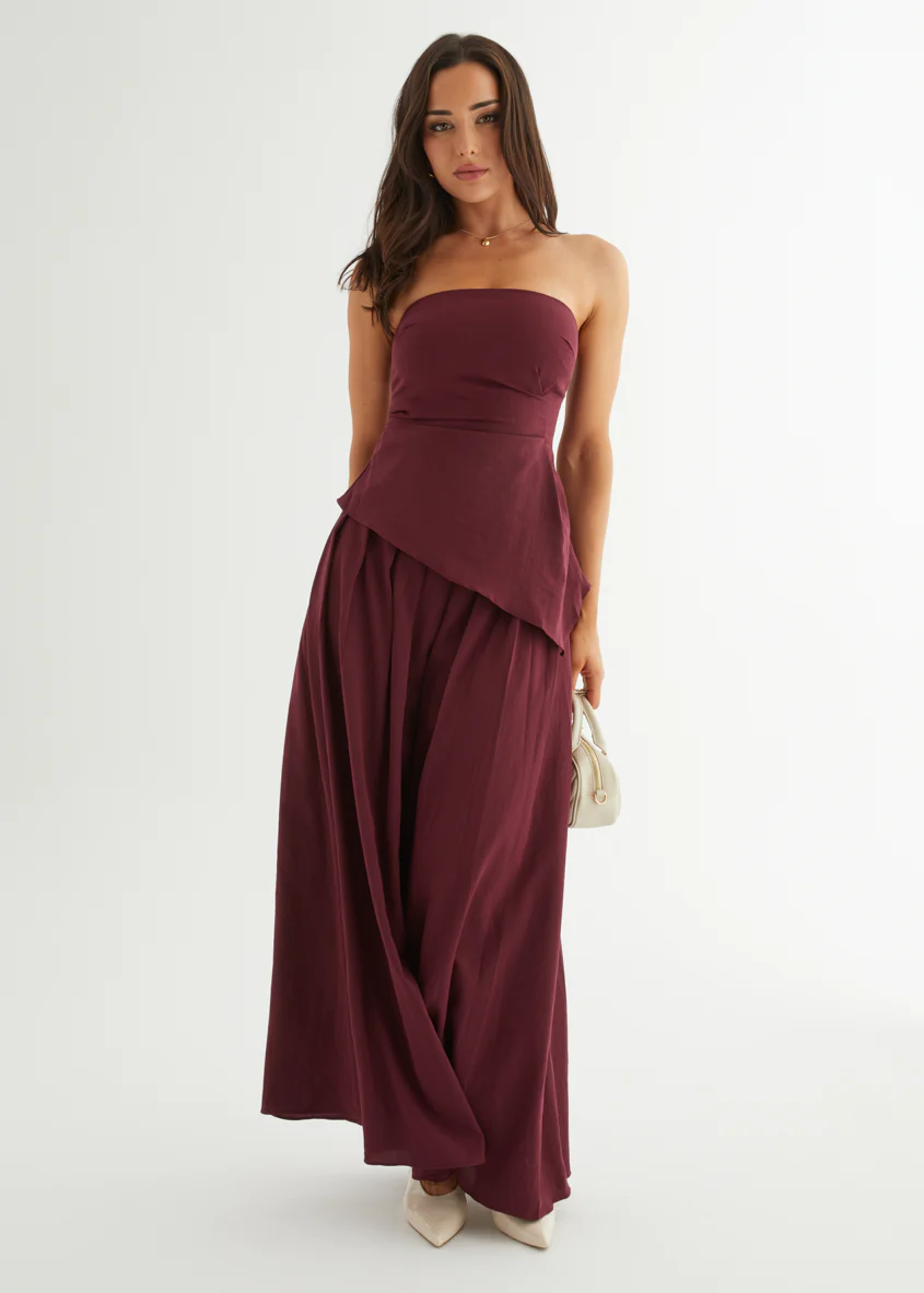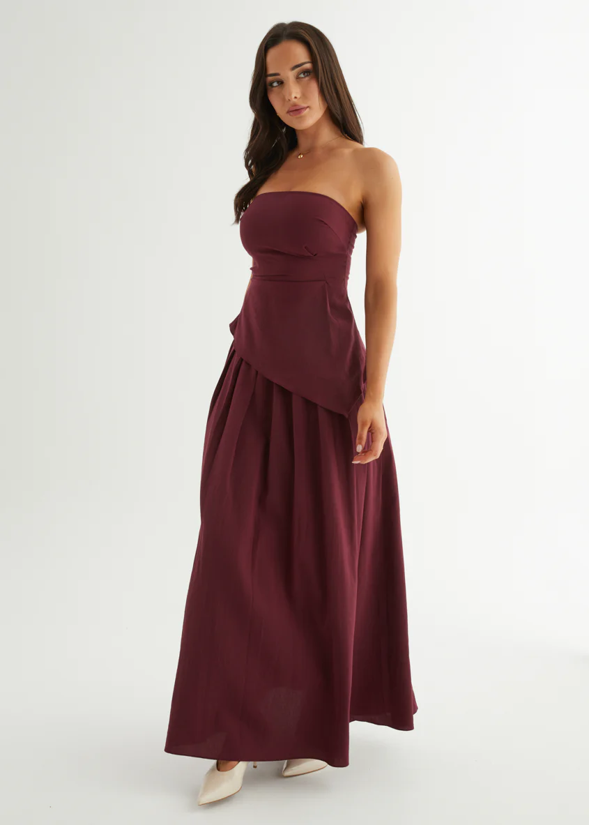 Milena Drop Shoulder Knit Midi Dress - Wine