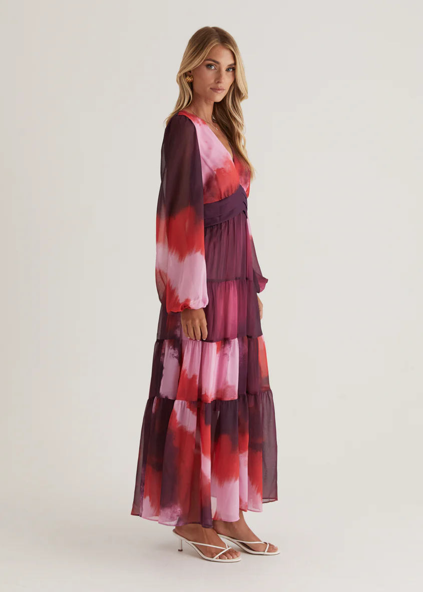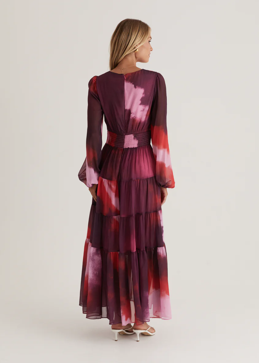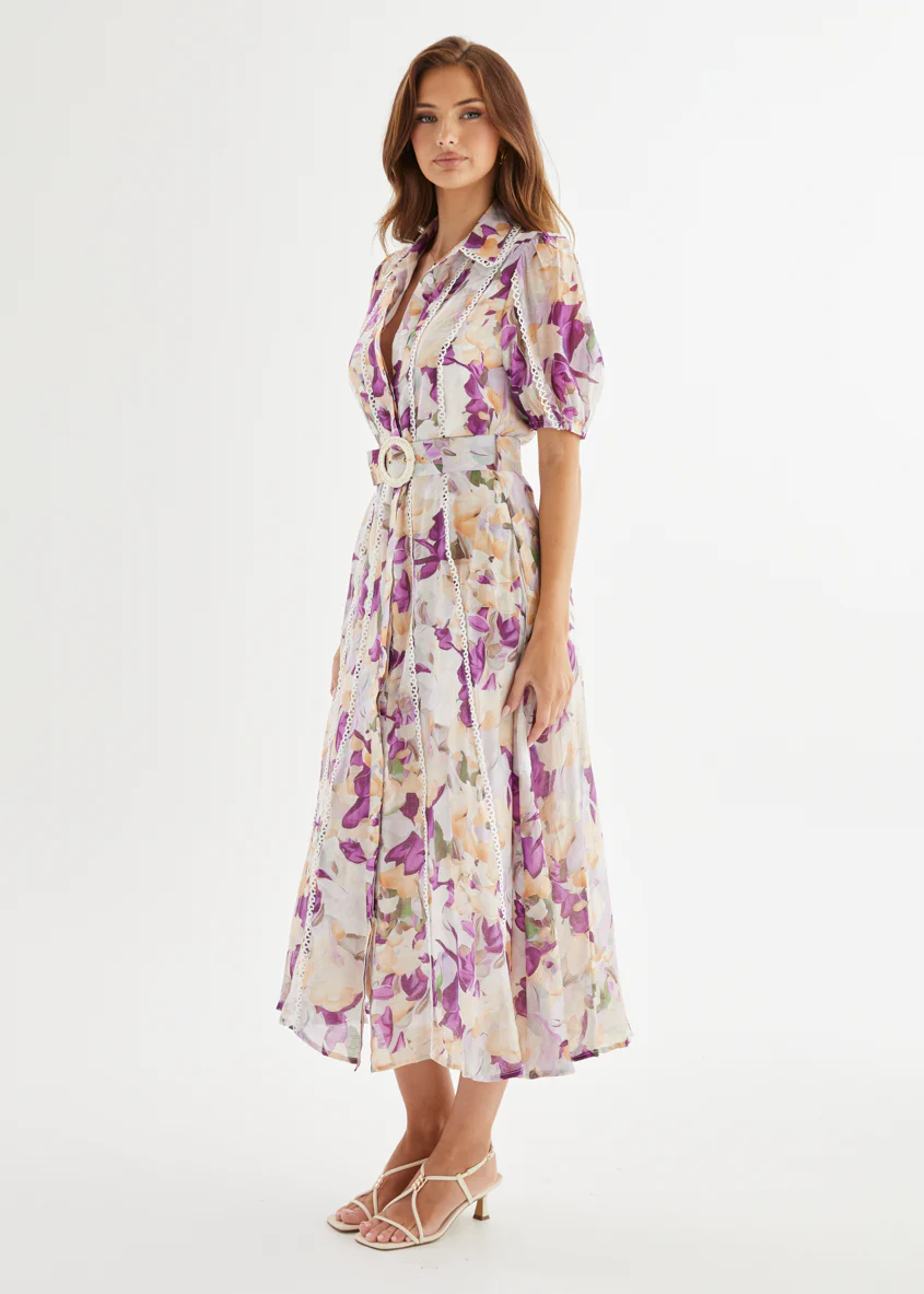 May Strapless Mesh Midi Dress - Mulberry Floral