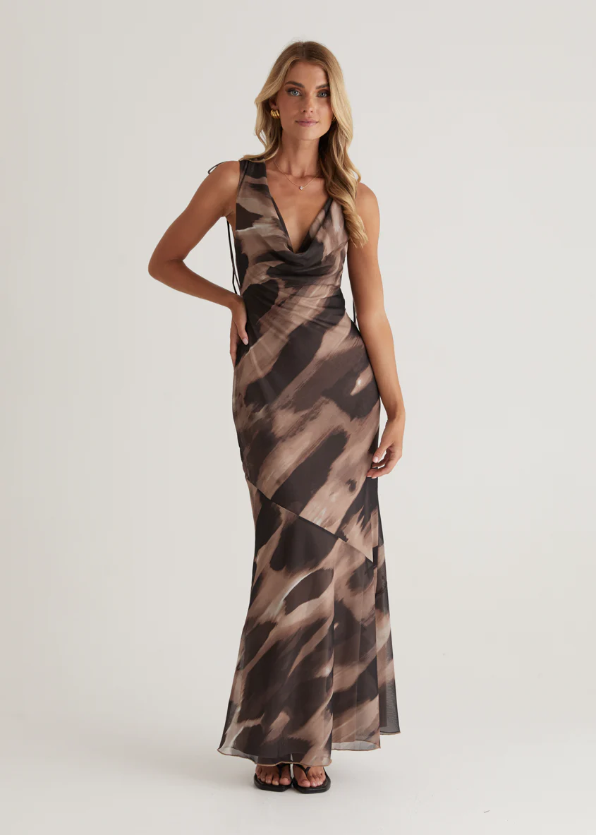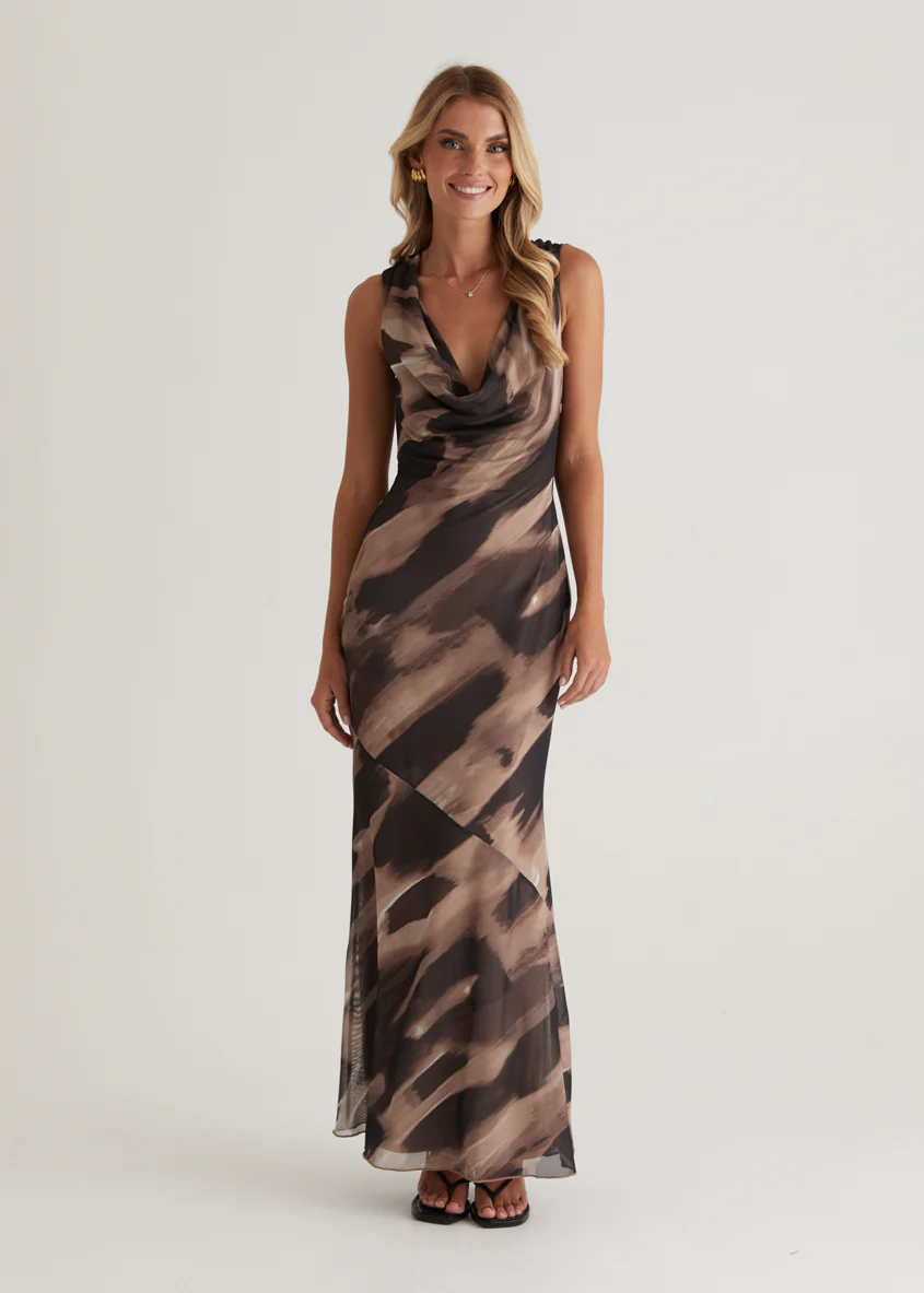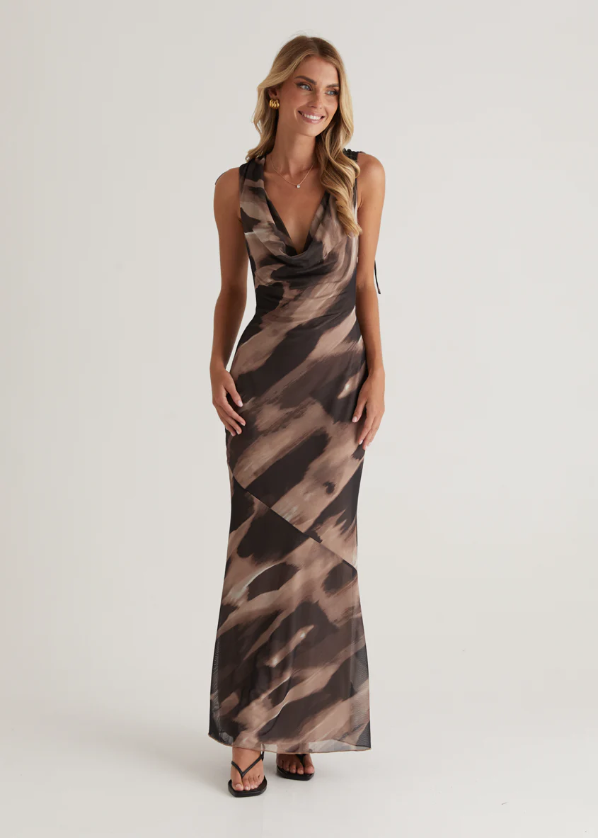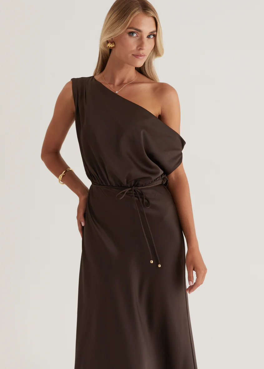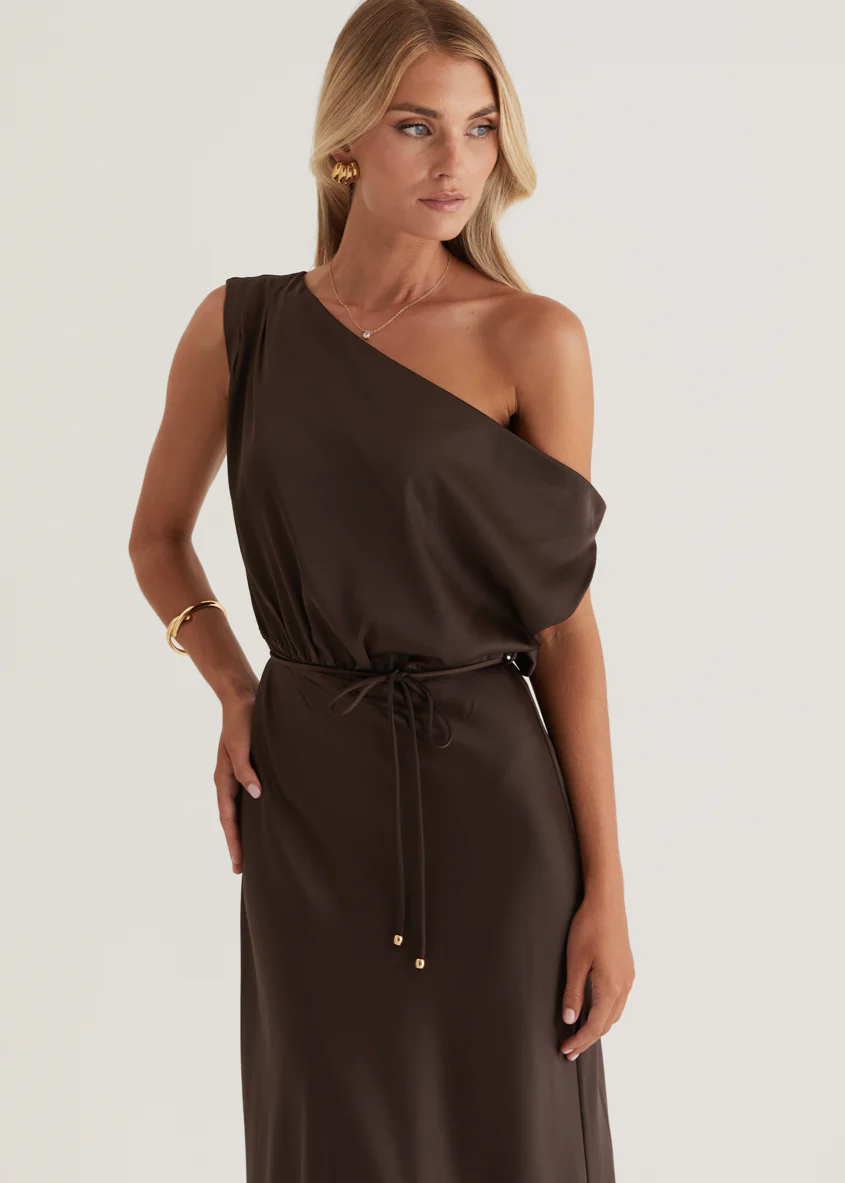 Marisa Drop Shoulder Midi Dress - Chocolate