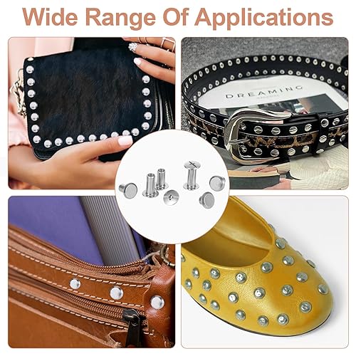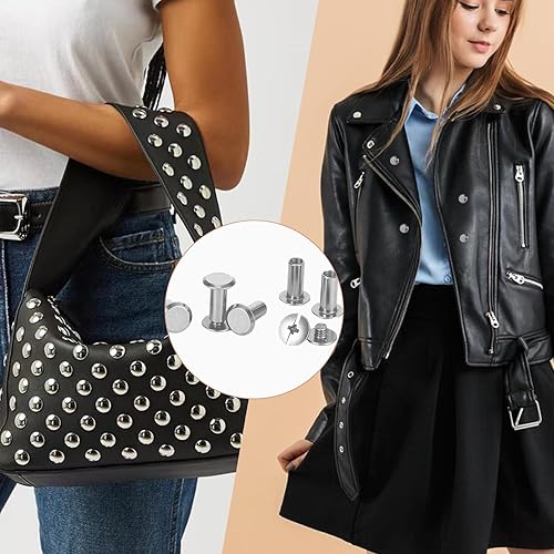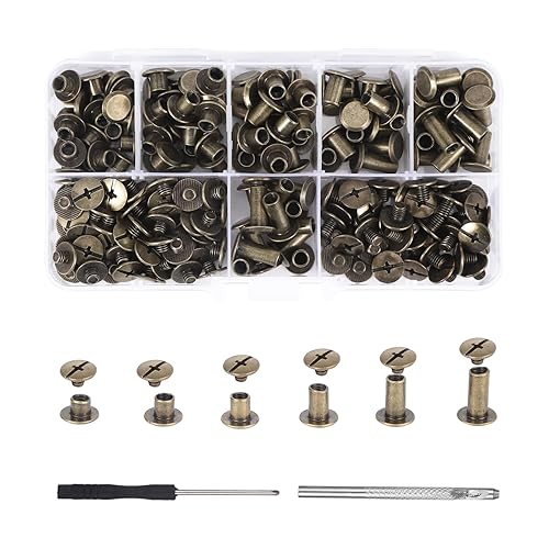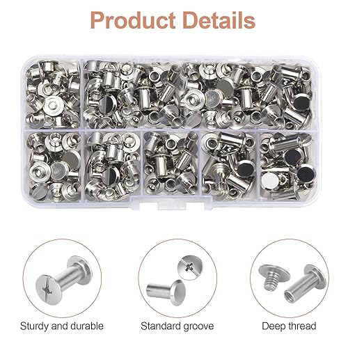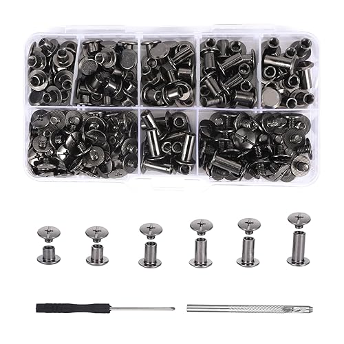 Set di 110 rivetti a vite neri con scatola di assortimento, viti per libri in acciaio inox, set di viti Chicago, 6 misure, M5 x 4/5/6/8/10/12 mm, rivetti in pelle, borchie per borse in pelle, zaini