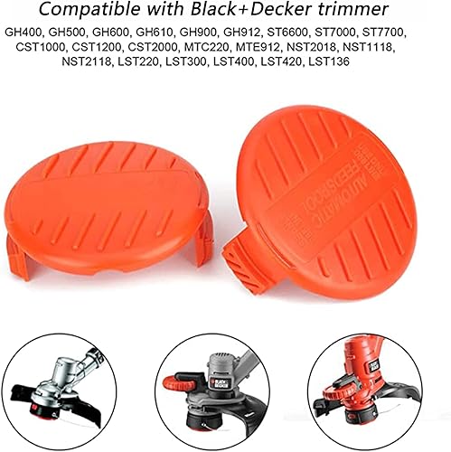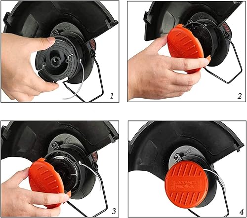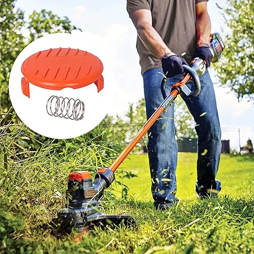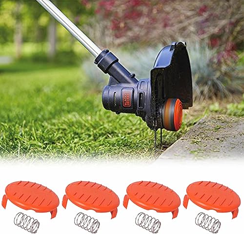 PILO Pack of 4 Covers, Line Cap, Cover Replacement Springs for Trimmer Spool, Black Decker, RC-100-P Lawnmower, plastica