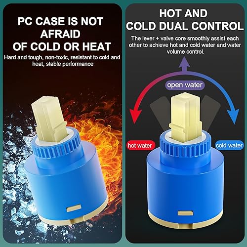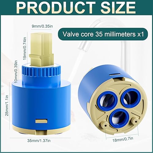 SoundZero Cartuccia a disco in ceramica, Cartuccia rubinetto per rubinetti monocomando, Cartuccia Rubinetto Miscelatore 35mm, Rubinetto di ricambio cartuccia, Cartuccia in ceramica da 35 mm (blu)