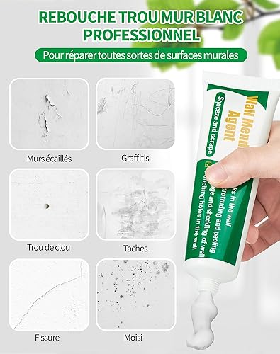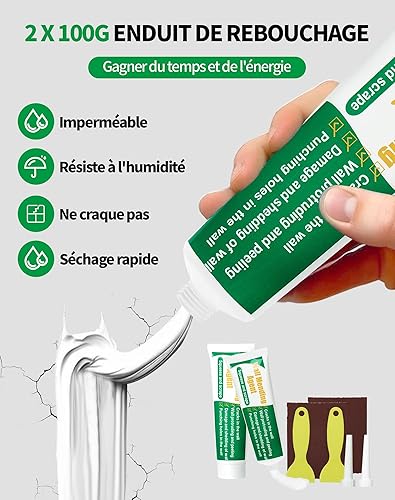 SOSALUK Pasta per Riparazione Parete Bianca 200g - Mastice Parete Bianca - Resistente all'Umidità e alle Crepe - Asciugatura Rapida - 2 Unità