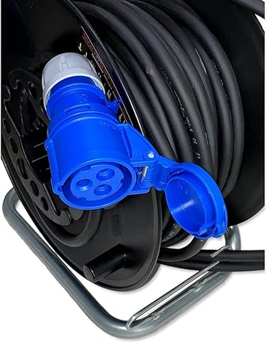 Avvolgicavo da campeggio con cavo in gomma H07RN-F 3G2,5, 3 x 2,5 mm, 25 m, 230 V, 16 A, attacco IP44, per esterni, cavo da campeggio, colore blu