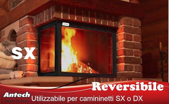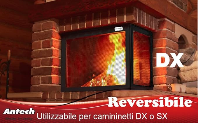 PARASCINTILLE ANGOLARE PER CAMINO REVERSIBILE IN FERRO BATTUTO Parafiamme per Caminetti, Caminetto Angolare CM 70 x 40 x H 45 modello DOLOMITE