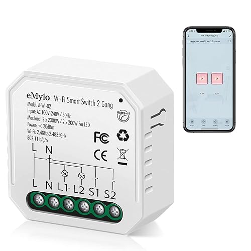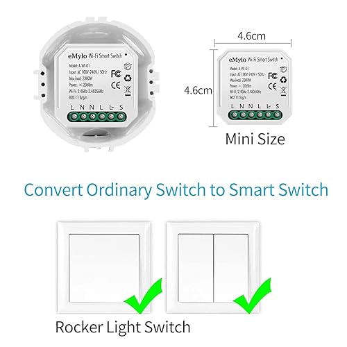 eMylo Mini Smart Wifi Relè Interruttore Telecomando Senza Fili Interruttore Della Luce Wifi AC 220V 2 Gang Interruttore Incorporato Modulo Relè 16A Timer Fai Da Te Controllo Vocale con Alexa Echo